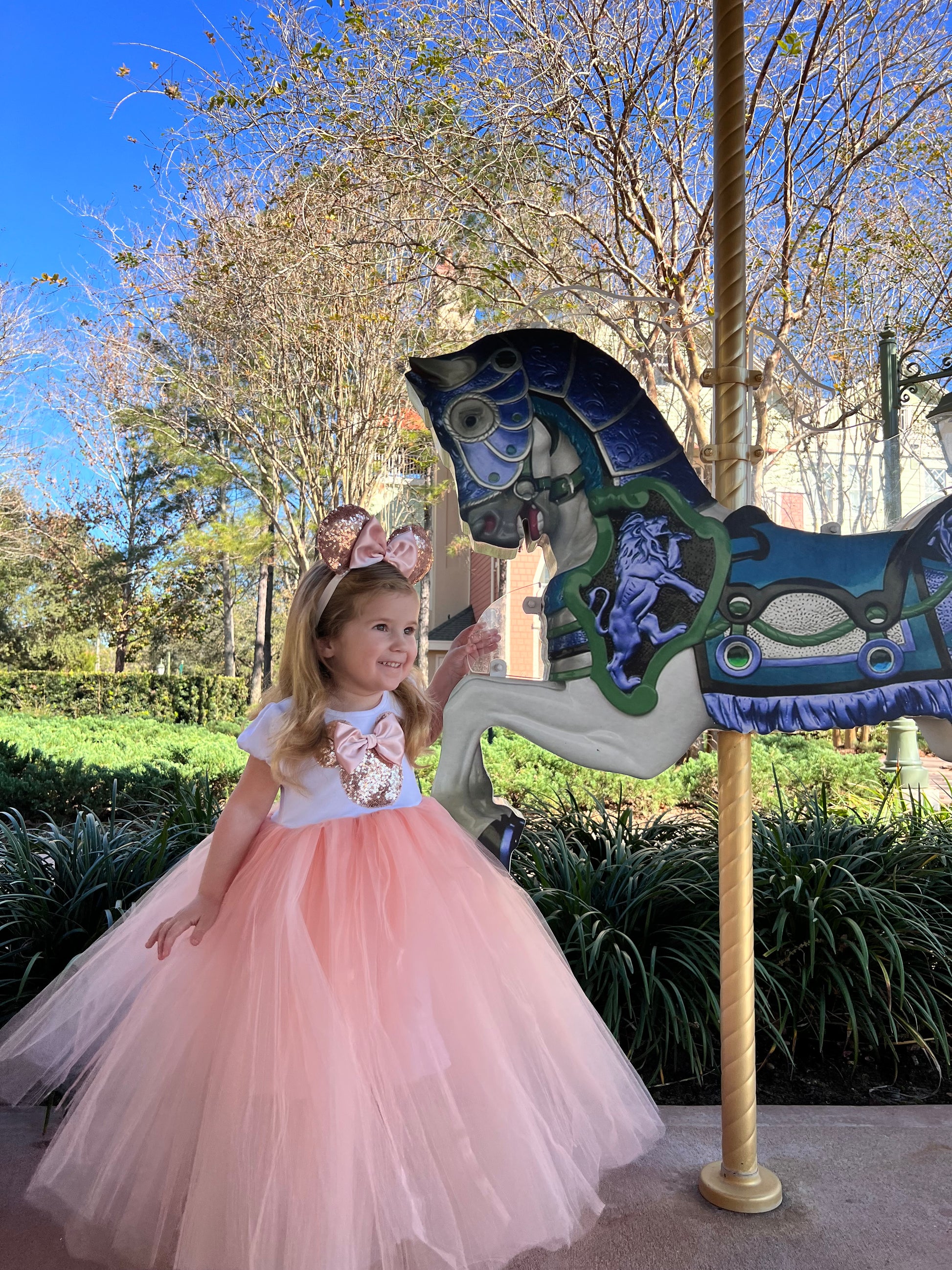 Beautiful tee dress with tutu skirt, embellished with rose gold sequins Minnie Mouse Silhouette and satin bow.